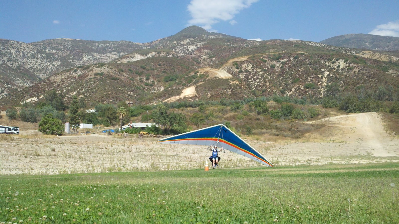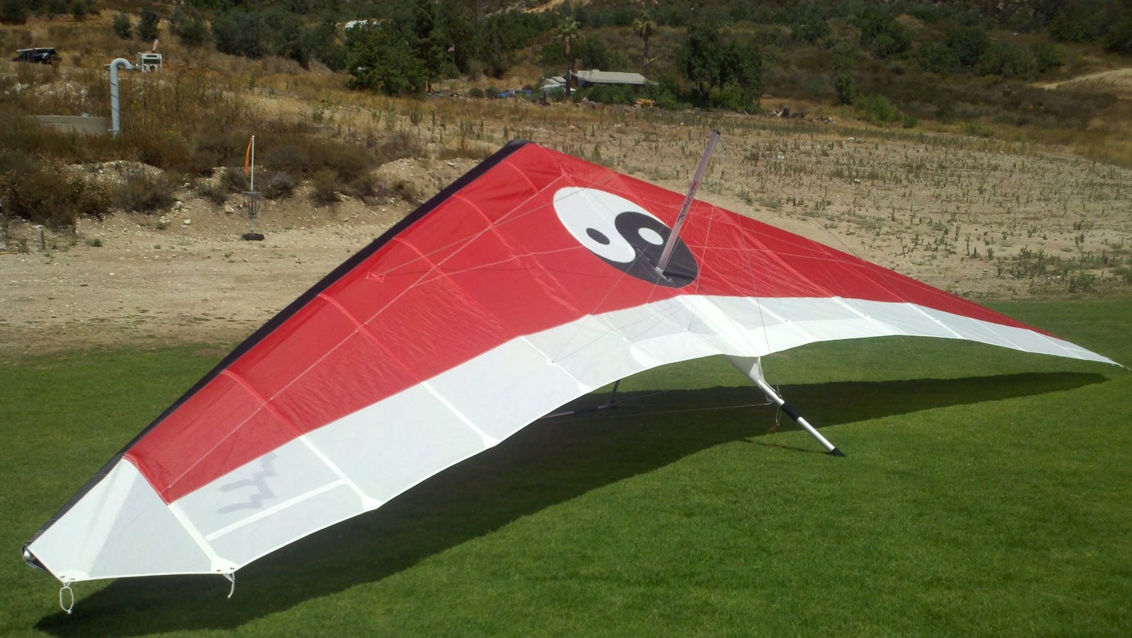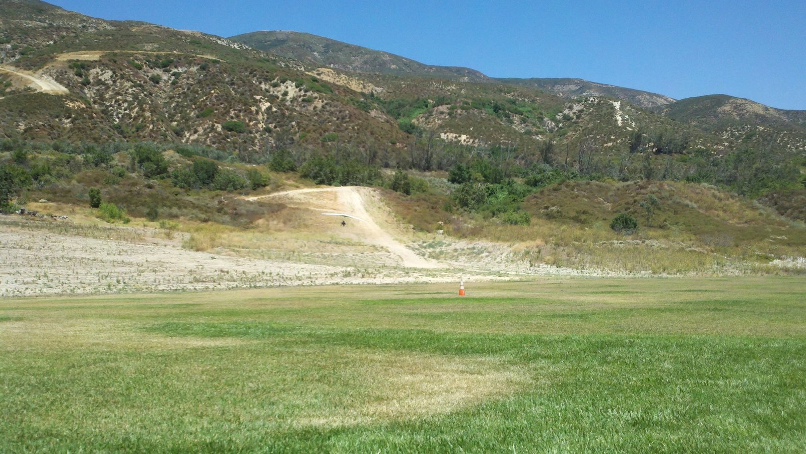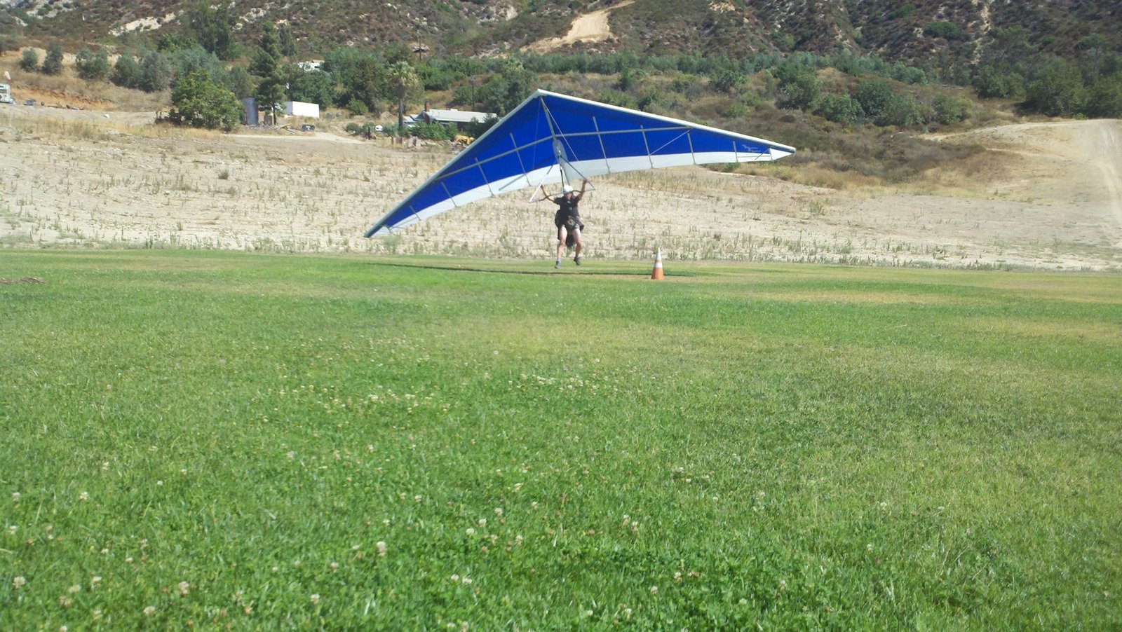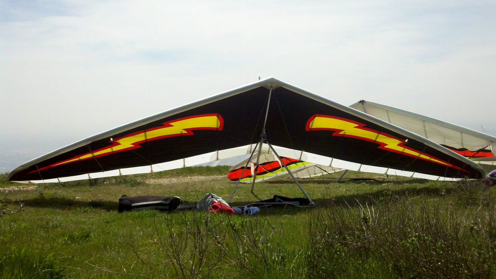 Clear and warm onshore day between Santa Ana episodes. Calm at the LZ and already a steady 5-10 SW at Regionals. Quite soarable. Nosecone wasn't attached so I flew straight to the LZ and landed. I had been ready to start my preflight and stopped to take a couple of pictures first, then re-started the preflight with the hang loop instead of at the nose area. Flew without attaching nosecone. |