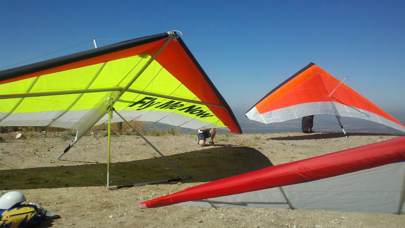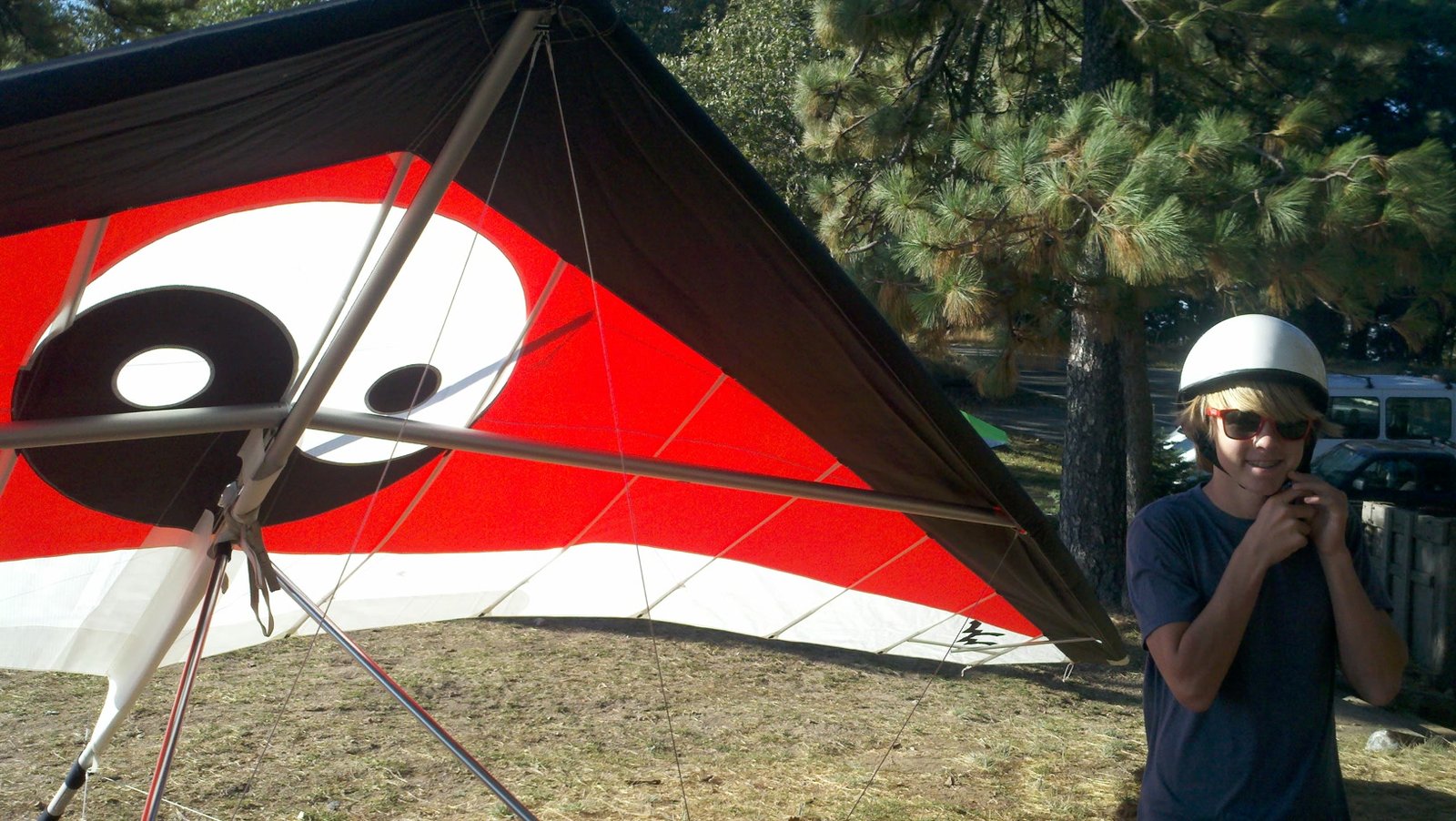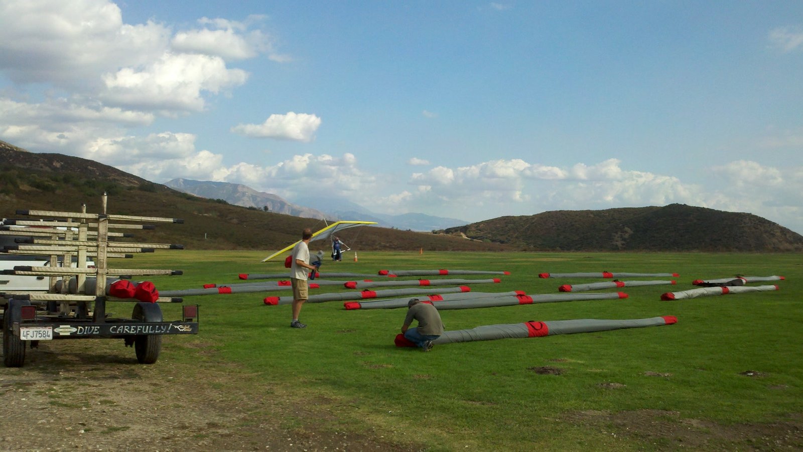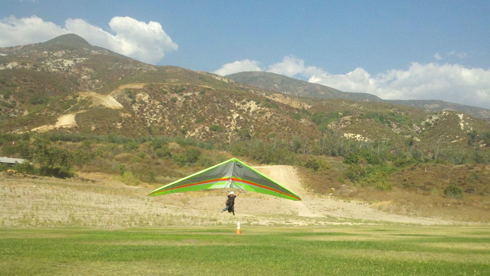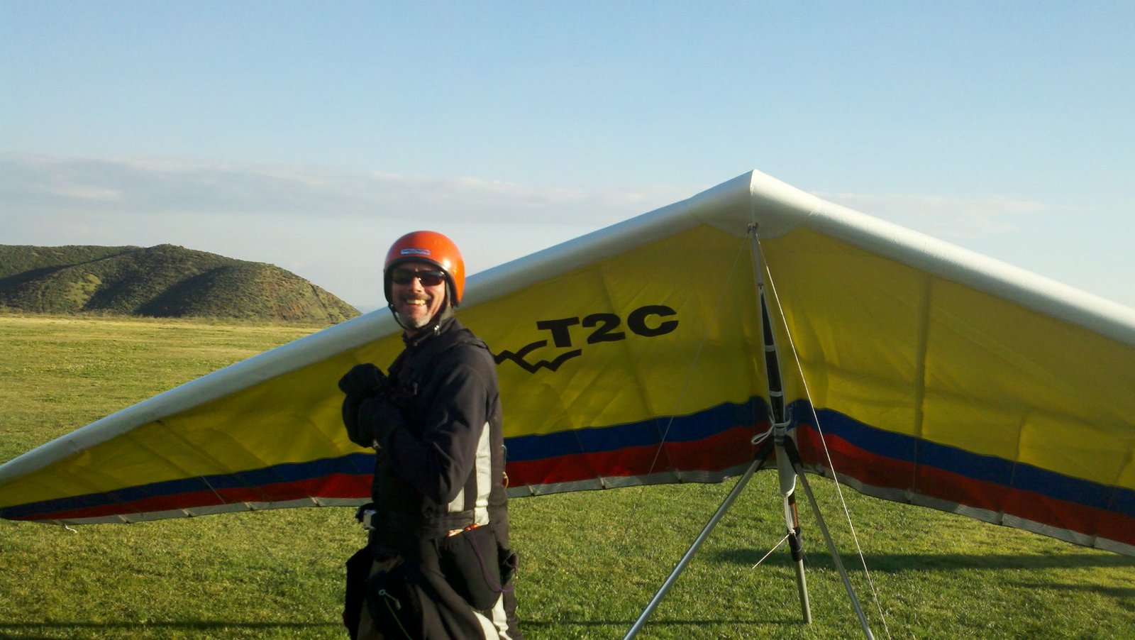Clear and warm onshore day between Santa Ana episodes. Calm at the LZ and already a steady 5-10 SW at Regionals. Quite soarable. Nosecone wasn't attached so I flew straight to the LZ and landed. I had been ready to start my preflight and stopped to take a couple of pictures first, then re-started the preflight with the hang loop instead of at the nose area. Flew without attaching nosecone. |