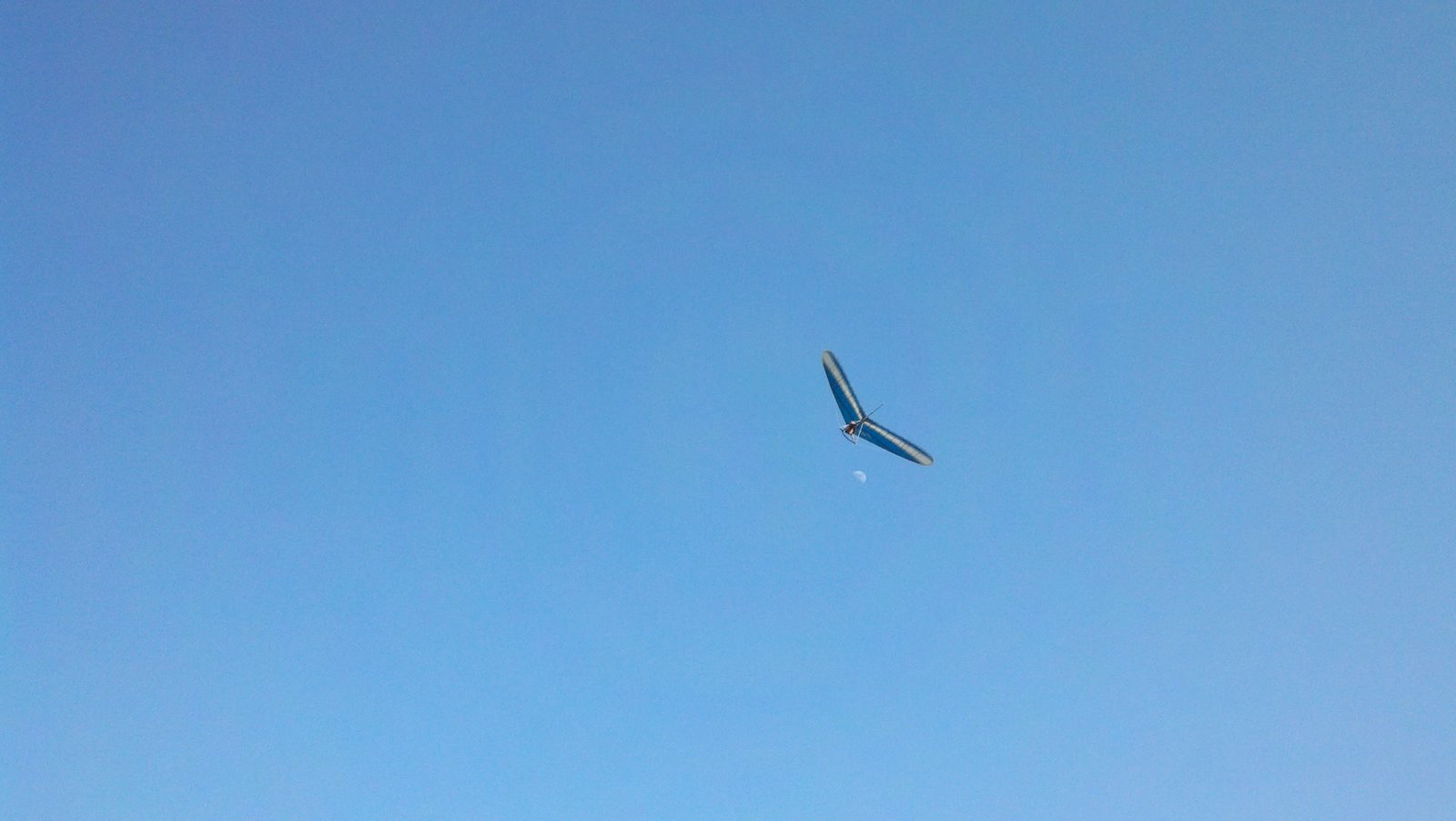 First onshore day after a long string of north winds. Warm and clear, on the mountaintop in a t-shirt. Good launch at 13:04 into a decent cycle. Thermals were small but easy to track, for the most part; they got a little unpredictable as they neared the inversion layer. Got to 4,700 MSL early, later topped-out at 4,950. Small forays east and west were fun but I didn’t bump into any lift. Had a fun hour thermalling with other gliders, swapping places in the stacks. Was circling just above Cloud Peak and had a Red Tail hawk come over and join me, climbing through after a few circles. That same thermal got a little turbulent and I had some abrupt yaw changes while circling steadily. Not much wind in the LZ, but solid SW for landing. Very Nice. Very slight left tendency VGT -> raised RT sprog one turn. |