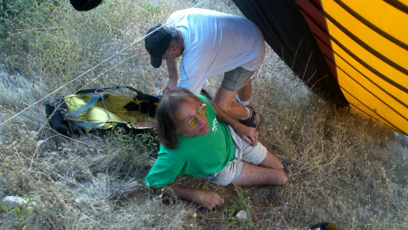 Got lifted and rolled just short of the target circle. Landed running with right wing dropping. Glider got ahead of me, the basetube hit, and I bent the downtube. Replace left downtube. |