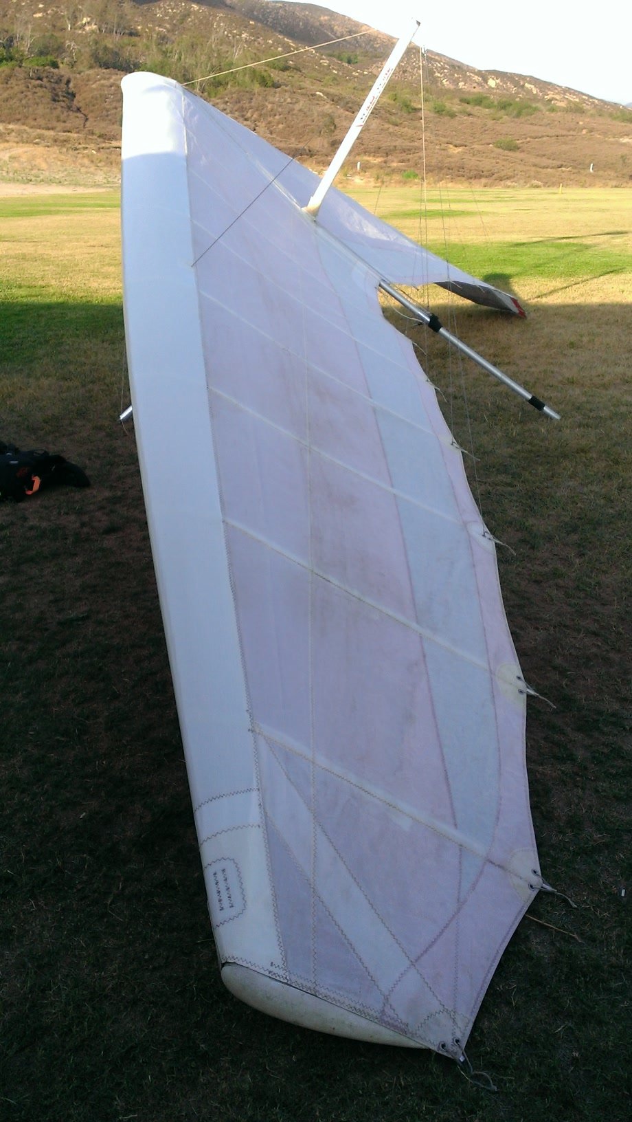 Good. Clear with thin clouds on the east half of the sky. SE to S at launch, 0-5. A couple of pops of lift but no time to work them with the others already landed and folded. OK SSE landing past the HG cone. Some weakly snapping batten tip levers. |