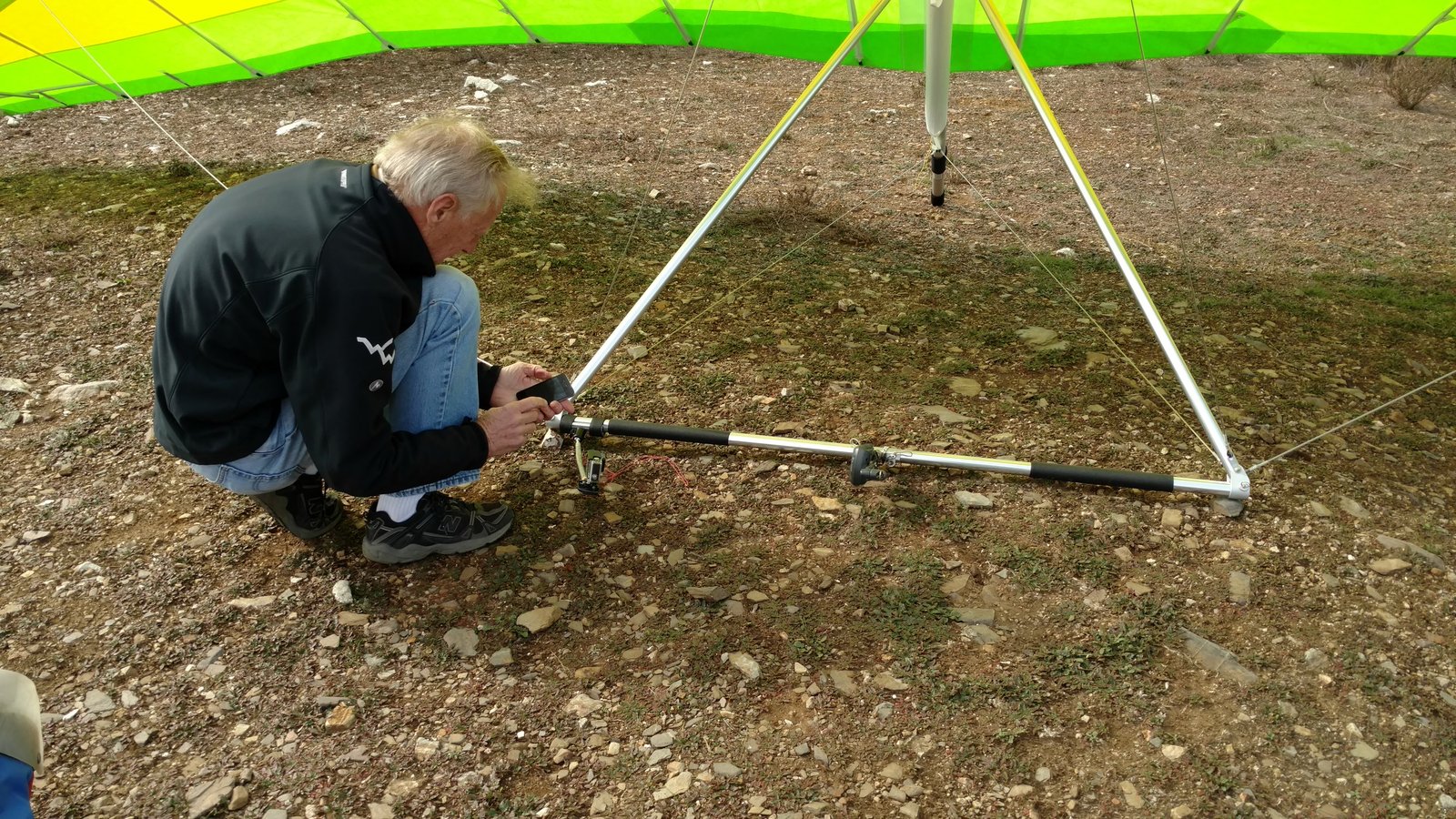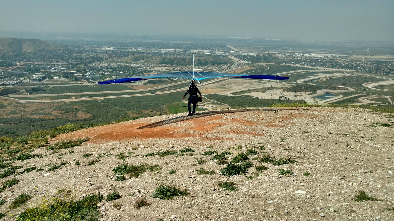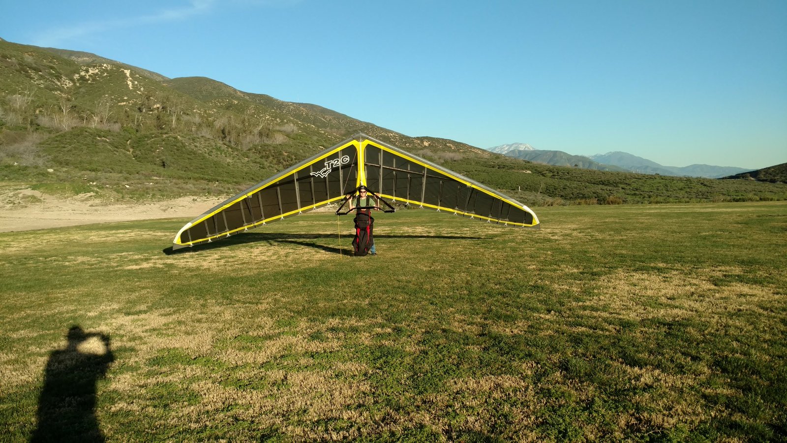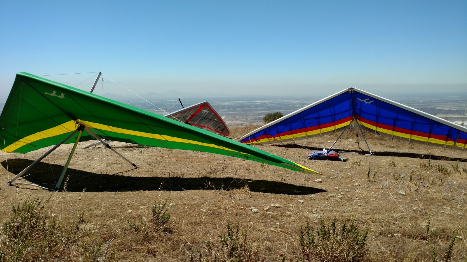 Great. No trim change over VG range. Clear and warm. Pre-frontal, rain expected after 4 p.m. Already steady SE at Crestline and Marshall, over 15 MPH. Almost ridge soarable SW of Regionals. Still steady east 400 AGL at the LZ. Calm S on the ground. Good landing 20 feet short of HG cone. |