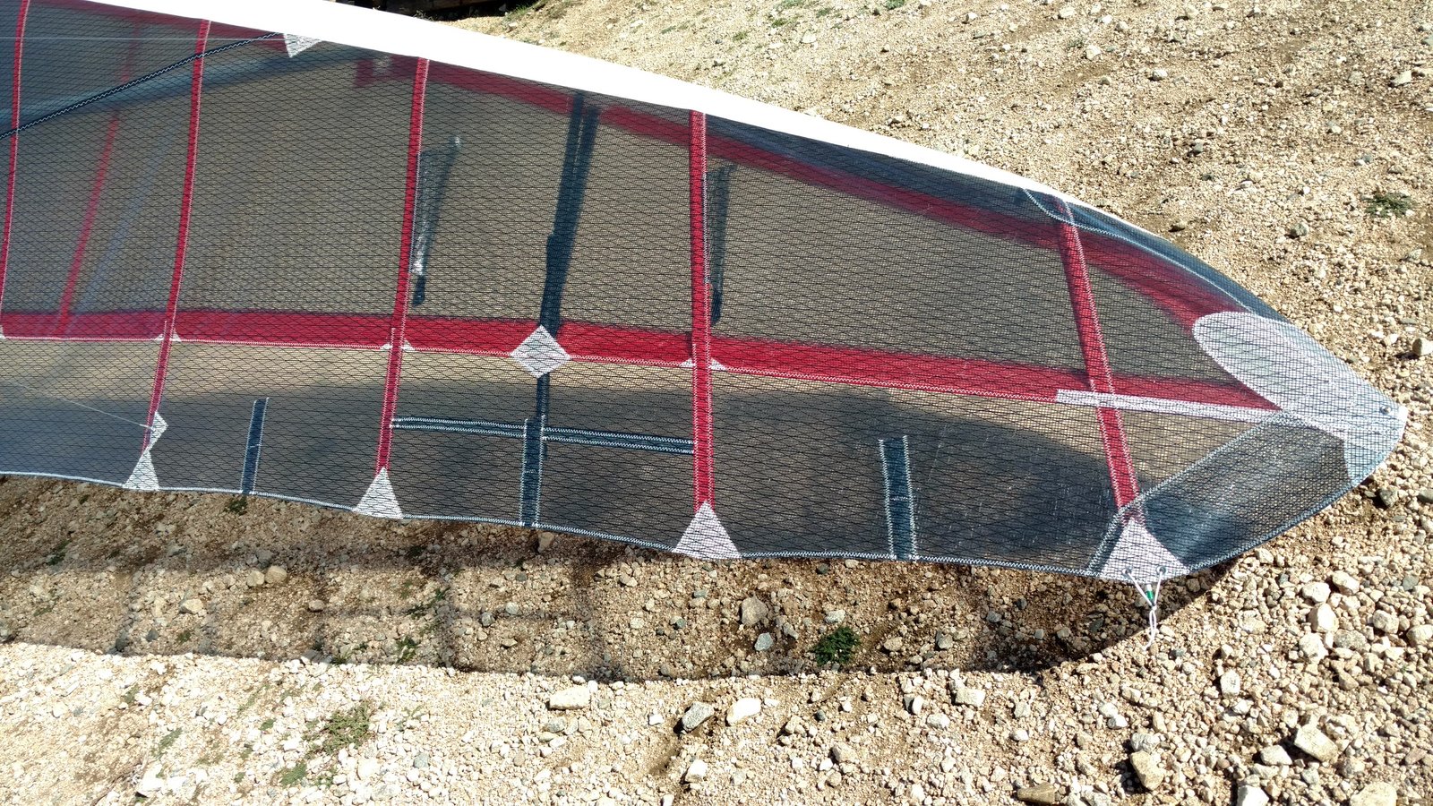 Good. Vt=19,20,22,22,19. VdVGT=56. Rather stiff VGT but great VGL. Never got very high but never had to fight to stay up. Had to fight to stay in some of the thermals. They were narrow, wandering, and had strong sink around them. Mild inversions at 4,400 and 4,800. Got to 4,900 for a second, once. A few others managed to track a couple of thermals up over 5k. Had a climb up the Cloud spine from above the 750 that was slow and relaxing after over an hour of difficult thermals. Overall drift light out of the S-SE. Photos, GPS track, and GoPro on keel. 155C with window BS, red batten pockets. |