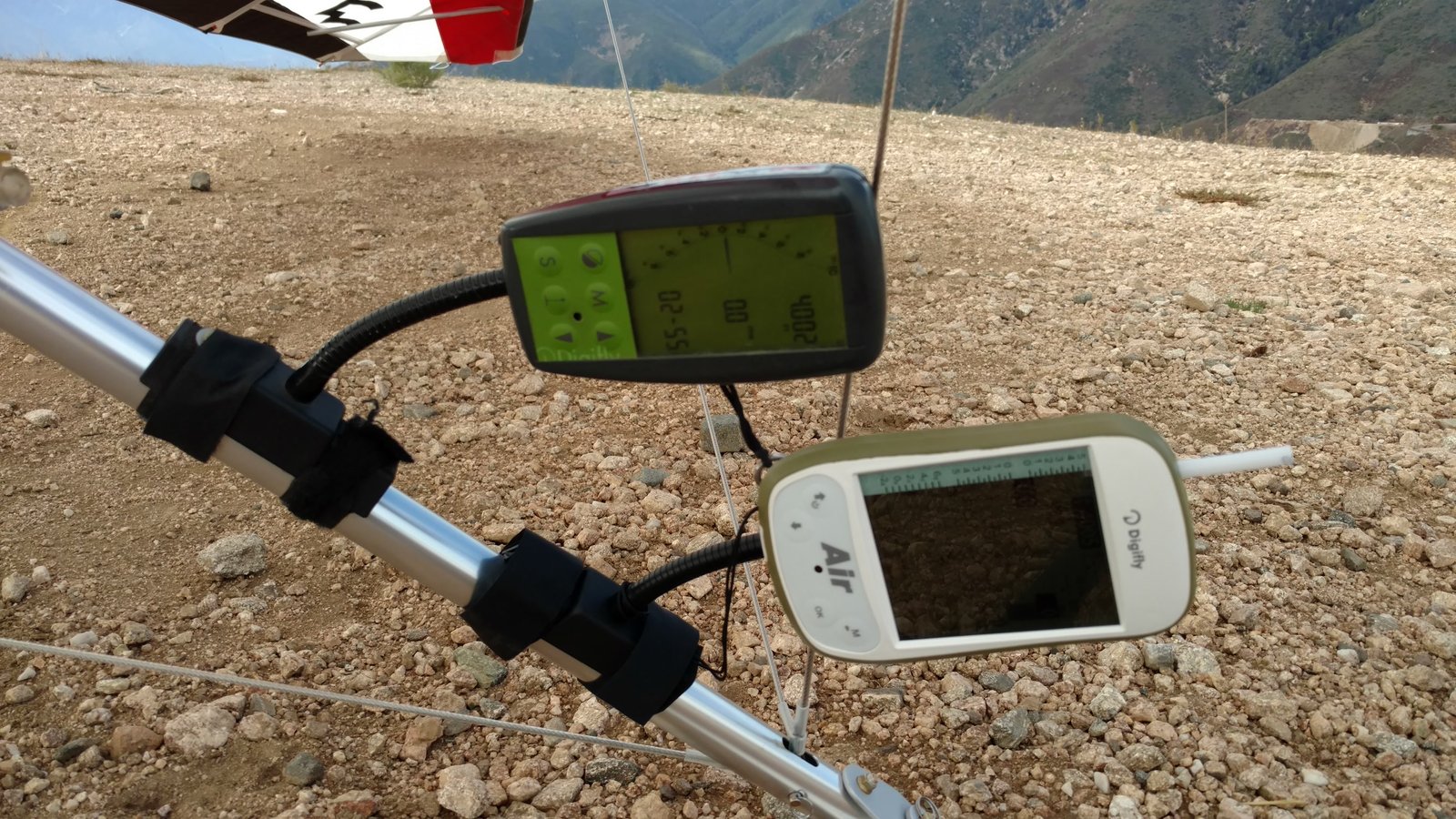 High overcast, t-shirt temps. Was increasing to 20 at Crestline so went to UM. Turns out it speed increasing and back ridge was soarable to the high school; oh well. I flew with my new DigiFly Air vario today. I knew NOTHING about how it worked before I turned it on with the glider ready to fly. Managed to set it to MPH/FPM and then launched. After five minutes I turned off the audio on my old vario (had it just in case) and I was able to get 53 minutes in weak conditions with unusual drift from the SE. Seeing my circles/corkscrews depicted while I flew was cool and helpful. I liked that it showed the wind direction when I was circling. It's capable of SO much, of course - competition waypoints and all that stuff, thermal alerts, more. I've really never flown with an instrument that did much more than beeped when I went up. Flight recorded automatically, easily exported to kml for Google Earth viewing. Annoying that the summary text in the kml was metric despite display set to imperial. Time on instrument was GMT. Glider handled great. I'm certain that I can feel through the basetube intermittent little waves of vibration that result from the #1 battens having bungies now. Thermals close to the faces and was close with a PG just above me at Cloud Peak for a long time; he came over in the LZ and we both had enjoyed the challenge. A PG was in the bushes near the 1,100 launch and I circles above him for a while then went and landed. No wind at the LZ, good hard flare to a one-stepper a few feet past the HG cone. |