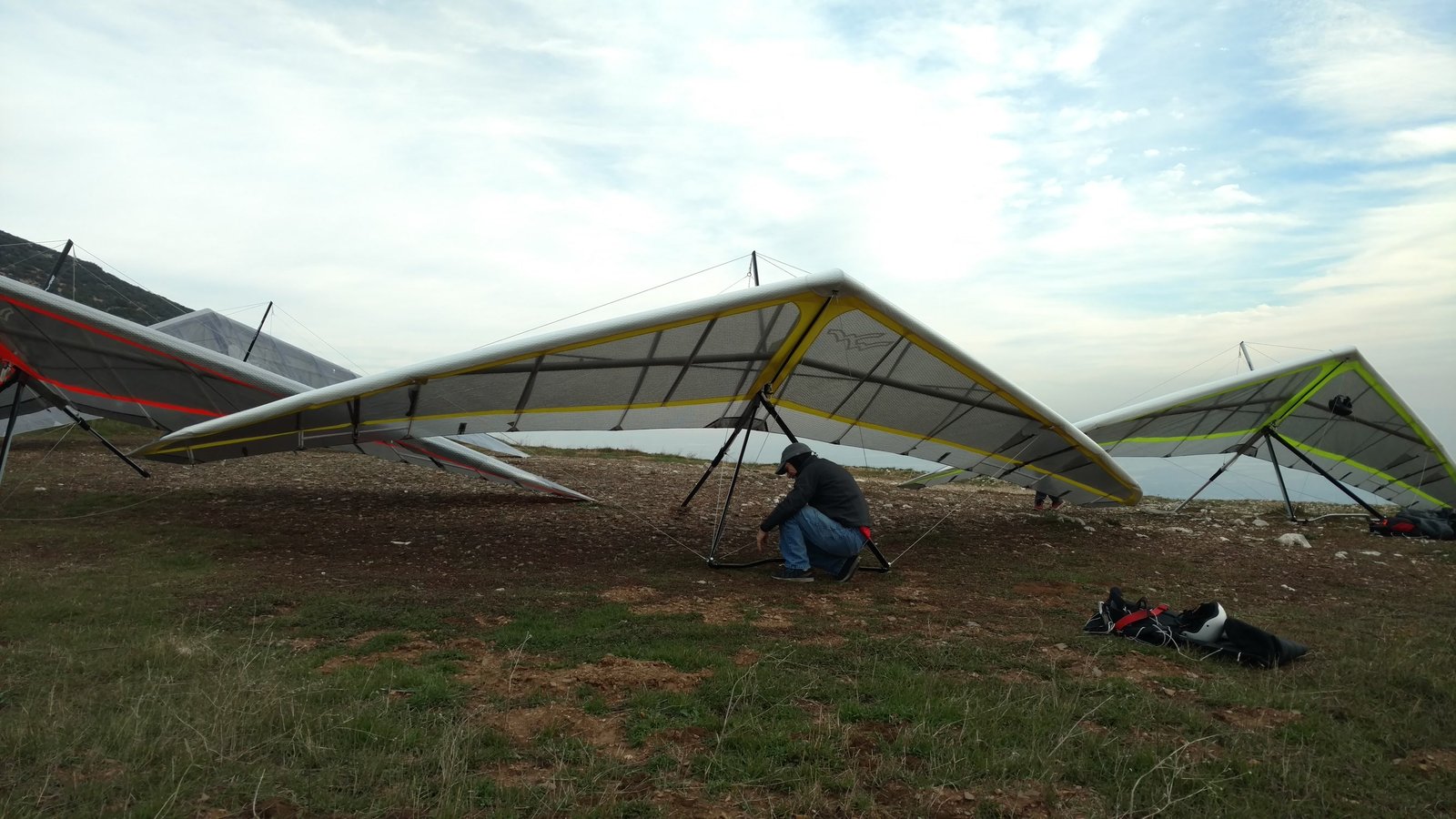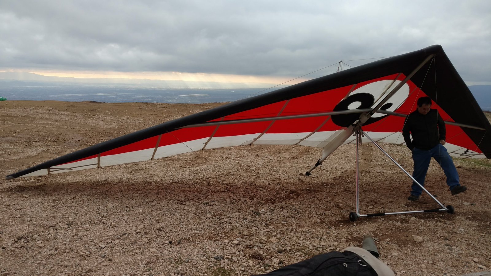 Good. Low overcast, almost no wind, SE puffs at launch. Zero wind at LZ, did a right-hand approach and overshot the PG cone about 12 feet. GoPro on keel. |