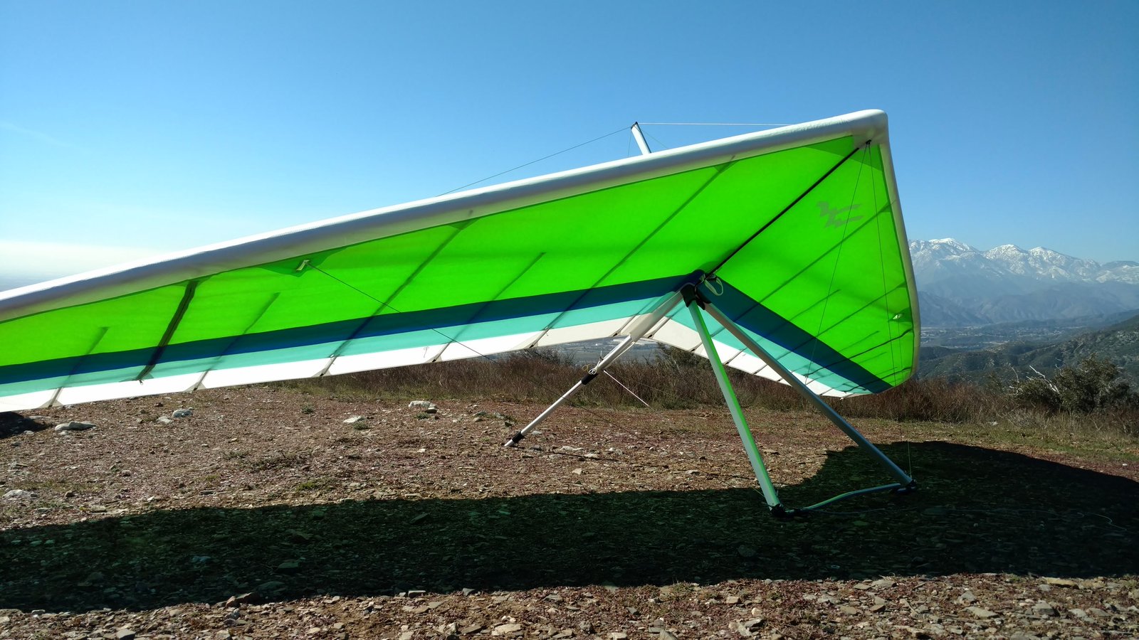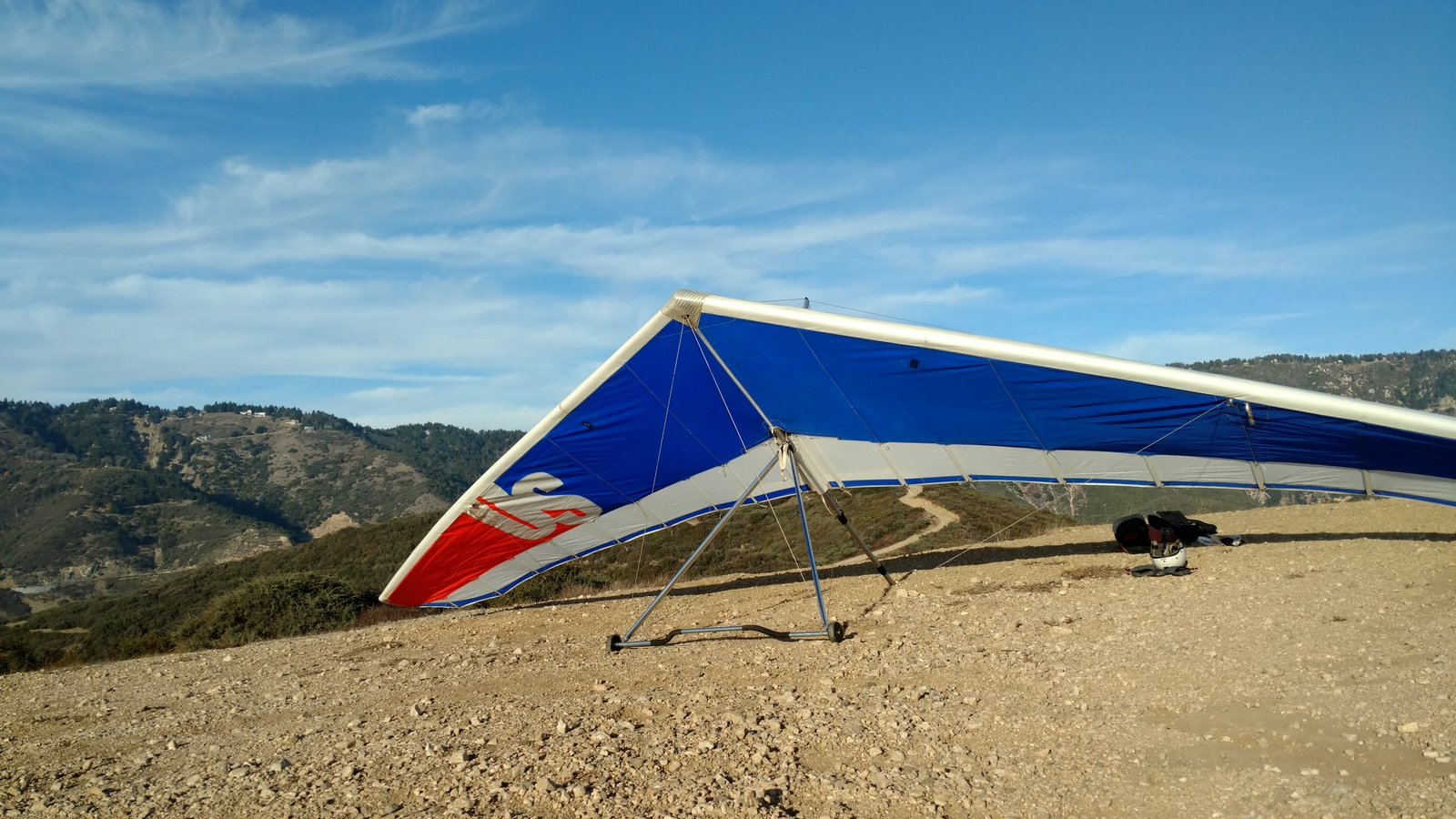 Good. Got just below the 350 and saw the trees at the top of the training hill swinging around. Got that thermal by working very hard and rode it all the way to Marshall. Windy up high, over 20 MPH at 5k, so didn't go back to Crestline. Fun north of the Afterbay. Good no-stepper in 15+. GoPro on keel. |