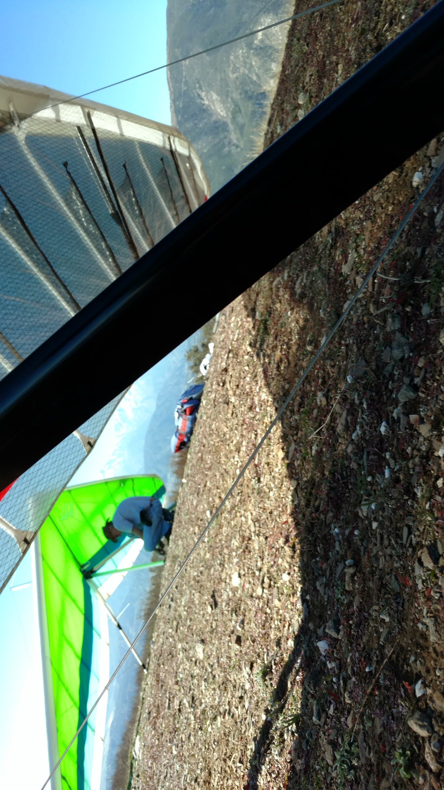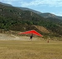 Good. TT to over 30. Fly unchanged w/alternate battens if able. Soarable but I was close to the terrain and had a hard time making my vario beep for a full circle most of the time. Right-hand approach to SE going fast and way across the LZ. Good running landing. Got flight track via Bluetooth and looked at it in Google Earth on my phone while going back up the hill. Get track with GPSDump, export kml, share to Google Drive, 'open'from Drive with GE. |