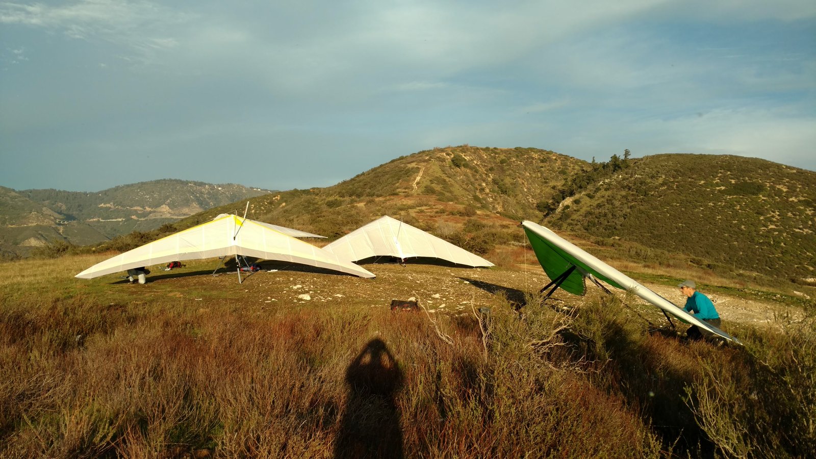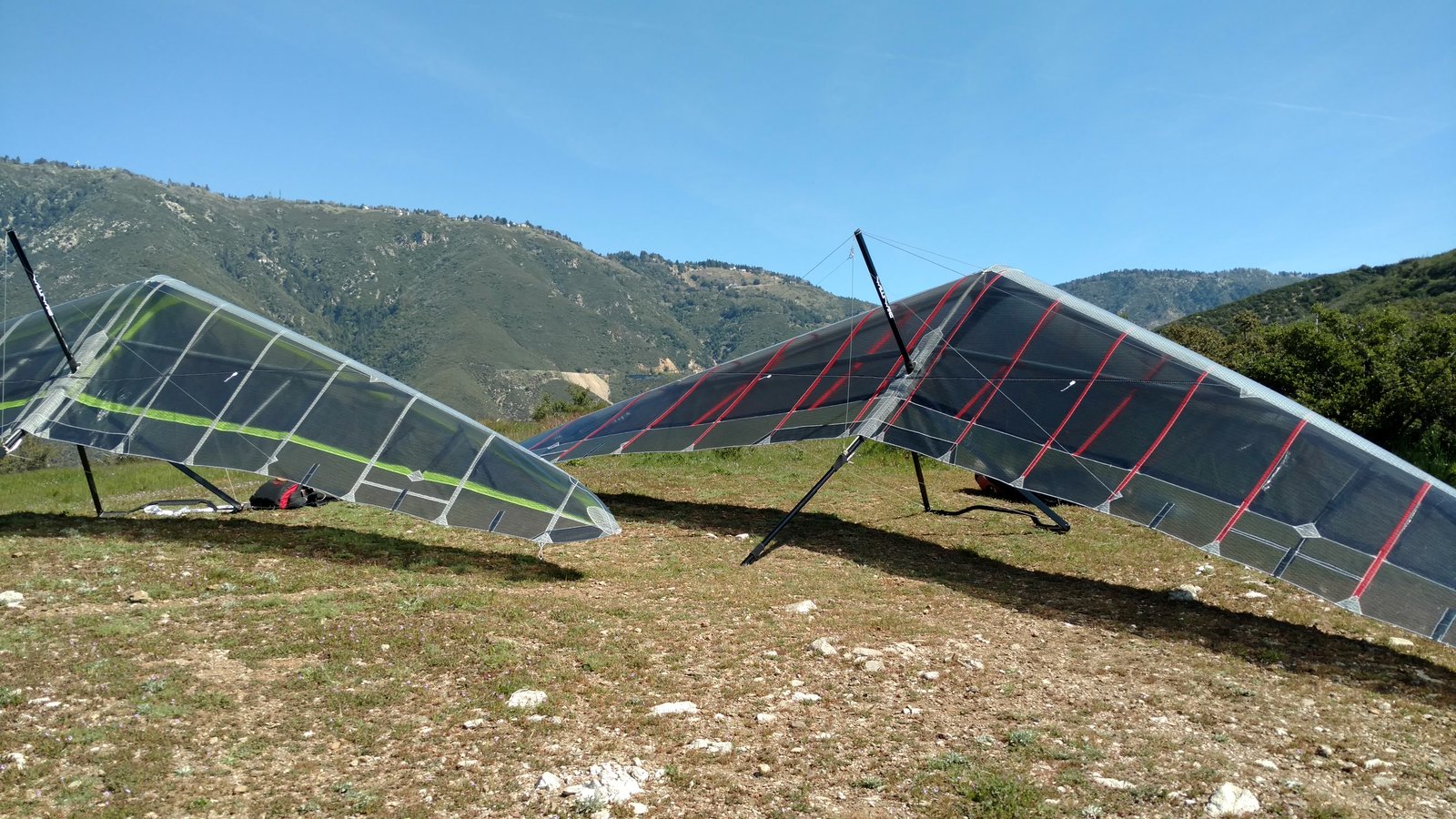 Good. Handling a bit heavy as expected with heavy Mylar sail. Similar to earlier, not as high north of the peak. Milked one of Cloud Peak to 5,450 by really focusing as it drifted. Alfredo came in below me. Went to Crestline but it was barely ridge soarable. 5,500 at Billboard and glided to UM with a pass by Cloud Peak. Top landing approach a little right of desired path. Ok. |