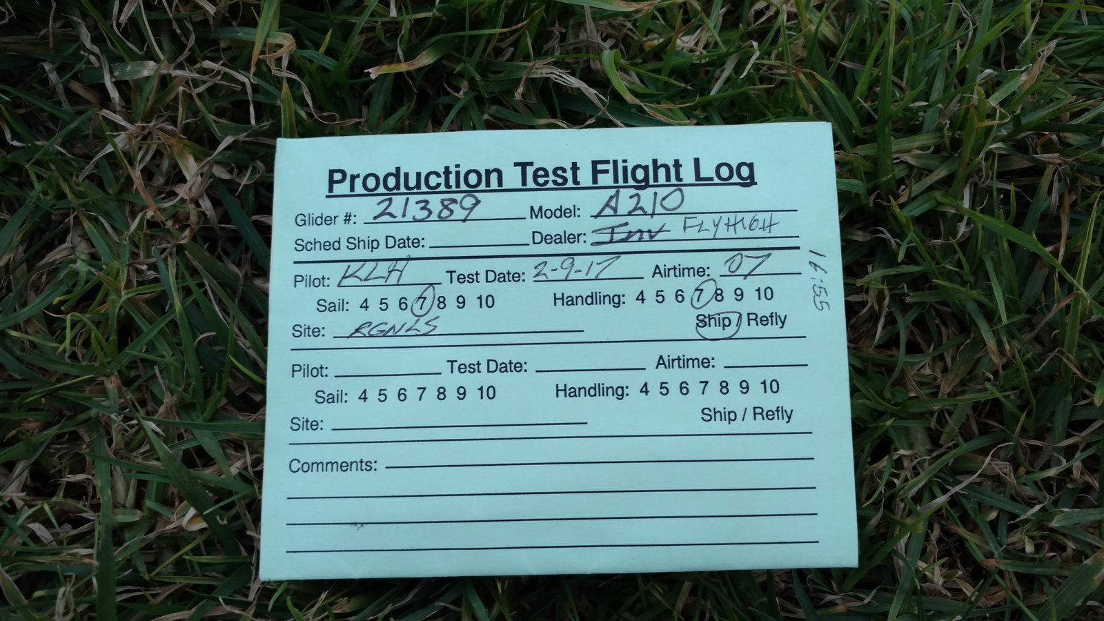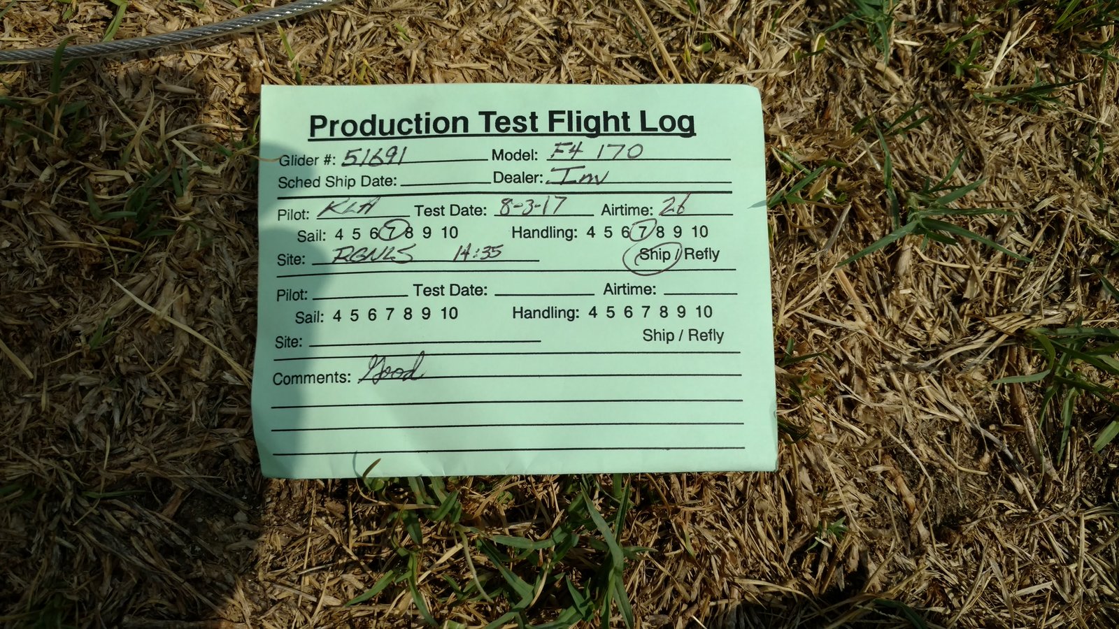 Very sweet handling. Virtually no TT. VdVGT=48. Hot and inverted. Good thermals, plentiful. Most fun was climbing from Last Chance to 5k+ and then going back to Billboard via finessing a weak thermal of the water tank. Landed with the PG cone between my feet but one wingtip was very low. |