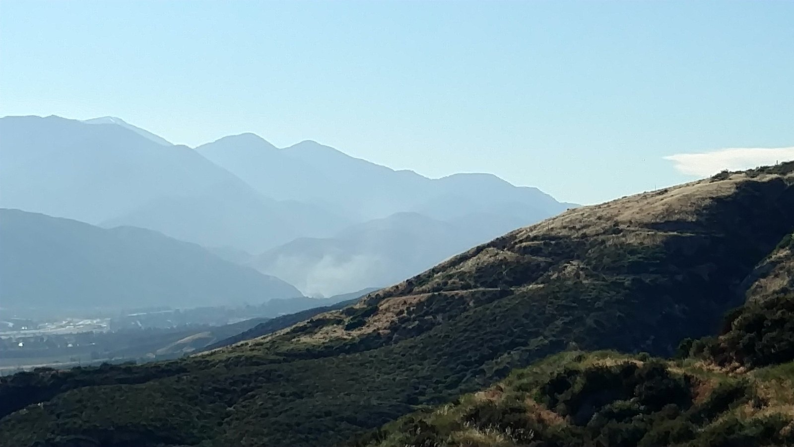 Wind less cycley. Had to scratch the slopes for all I was worth. Great fun! Flew with regular Z5 and helmet. Got up to below Cloud Peak. Was thinking about what to do next when I realized I'd been hearing sirens getting closer for a couple of minutes. Scanned the LZ - no mishap visible. Finally spotted a plum of smoke coming from the mouth of Devil Canyon. Too low to fly over and investigate, wary of possible helicopter arrival. Decided to dive down and land and then hurry back up to get my truck. Others remained in the air. Smoke didn't become visible from the LZ. Mylar balloon(s) had hit power lines and arced; spot fire between paved roads. Got a ride to the pond and hiked the rest of the way. GoPro on keel both flights. |