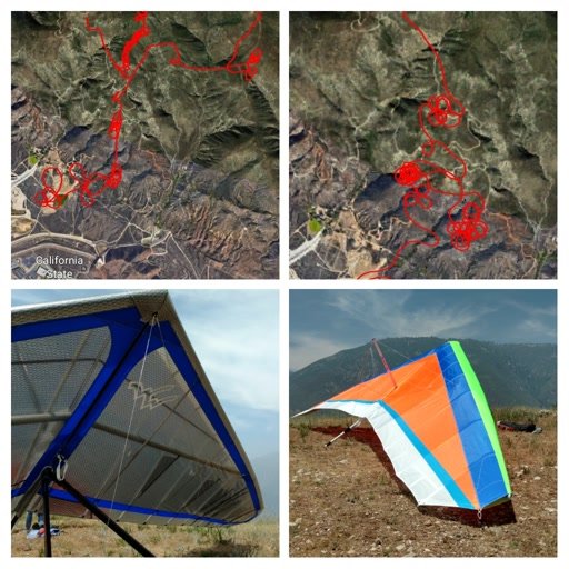 Good. Almost no TT. Still no instrument but strong thermals made it easy to stay up. Climbed in a core right at Cloud Peak with Wolfi a little below and out front. His core was better and after he got higher I got under him and we climbed out steadily. I assumed he had pulled away but eventually I saw him off my wingtip, then below. He was maneuvering to get me in a photo but no luck. He went north and I went to the peak N of Marshall. H e scratched up from below Crestline as I was climbing in a great core before going back to Crestline myself. Came back out front and worked Cloud a little then headed over the LZ. Wished I had my helmet cam on for the great view of four colorful HGs just below me. Went of the college then came back and dove it in to land second. SW approach into a nice cycle and a no-stepper 10 feet short of the PG cone. Recorded track with MyTracks. |