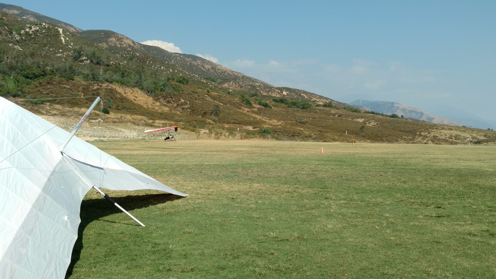 Good. Clear and warm. Almost soarable. Soaring Predictor calls foe 5k max or so. Composing LZ. Zero wings, tight right-hand approach. Pop of lift on ground skim, good one-stepper 24 feet past the PG cone. |