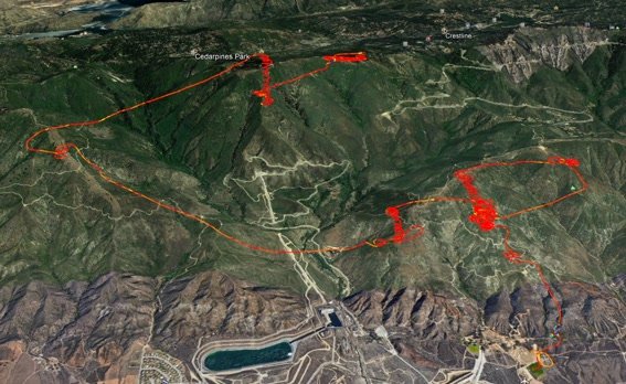 Log from video and KMZ. Did the circuit to Pine, UM, etc. |