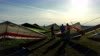 Good. Still pretty windy and west - launched toward the bump with the wind indicator. Climbed to the top of Cloud Peak in six minutes without doing any circles - just back and forth climbing the windward faces. Easy big thermals, slow going upwind. Went to the Afterbay briefly. From high dove down to get behind Janica Schmanika, close. Buzzed UM. Over the 750 again Dustin Martin circled me with his new comp T2C 144C. Considered trying a landing on the 750 but too bumpy, did a straight in approach from there to short of the PG cone and a nice no-stepper. GoPro on keel, Aldrich pix of landing. |
