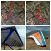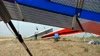 Had trouble getting the right tip wand in (as I did at the shop). Looked inside and saw that the wand cup was at the back of the LE. From now on I will put the wands in when prepping Sport and U2 frames. Decided to fly it anyway since I'd flown a glider like that before. Glider had the equivalent of a 2-hole left turn, primarily when thermalling. Roll response was nice, like a sweet Dacron S2. VT=23-25 so maybe try the aft KP hole. PP good VdVGT (53 MPH). No TT, no BS rumble. The tip wand error probably accounts for the large wrinkle on the TS of the right tip. Right sprog cable went tight at VG3/4; Left sprog cable didn't go tight at all. Tip flutter VdVGT, mild on the left, a lot on the right. Replace RT RLE or reinstall wand receptacle. |
