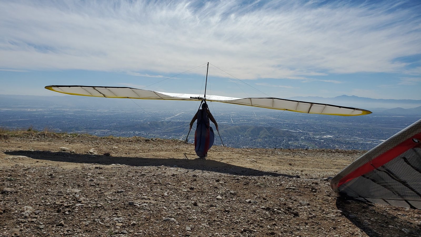 Great. Launched into lift from SE and circles right away. Got up but by bit, always turning. Wind from SW picking up, soared faces & thermals to top of Cloud Peak. Went to UM then dove for LZ. Switch, on & off wind there. Fast right-hand approach, got lifted a lot as I rounded-out. Trotting wing tip down right circle, holding the nose up..