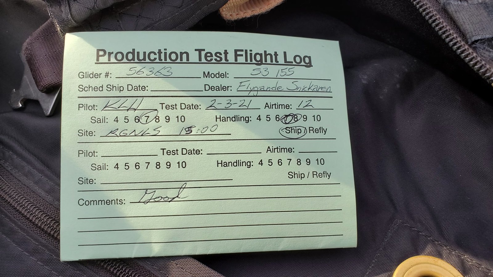Low inversion layer. Had previously been forecast to be N. No wind in setup area, puffs up launch. Could see streamers standing out but didn't feel the breeze. Good hard run. A few beeps but no climbs. Mostly zero wind at the lz, landed heading S, good flare.