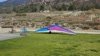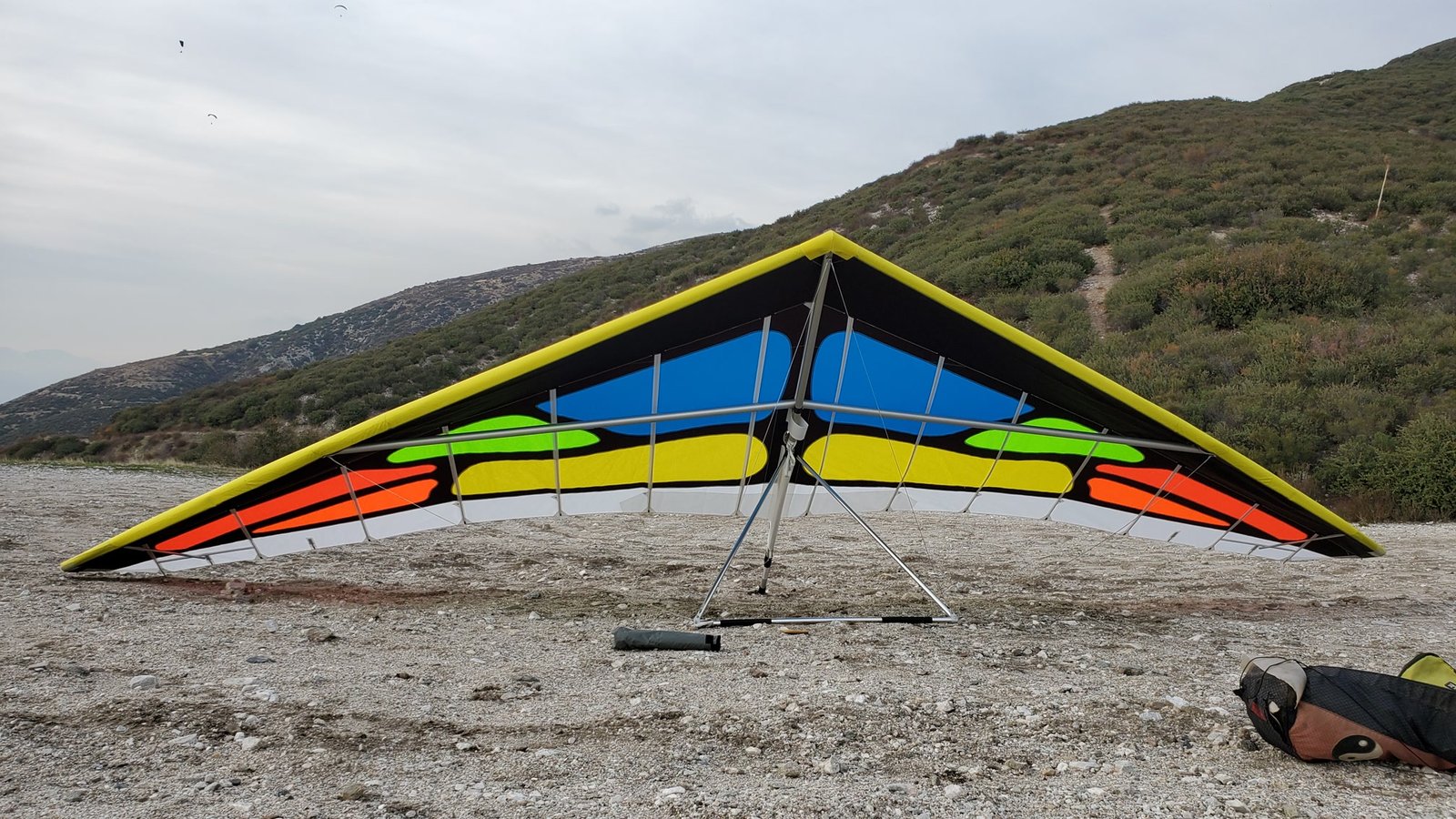 Sunny day had filled-in with high clouds, rain coming after midnight, for days. Decided a sledder with the hg wasn't worth it. Pulled the pg out to kite, finally. Light S breeze. Had a couple of good inflations but not enough wind to keep it Flying overhead. Cycles got weaker and more W. Had some practice popping the wing open and realigning. Once I choked-up on the A's a few inches before a real inflation attempt, thinking it might zoom up better. It did and when it got nearly overhead I forgot to release the A's a bit and the LE tucked under smartly. Tried one forward inflation in the dying cycles and it did come up straight before showing me with lines. Felt good overall. No flailing.