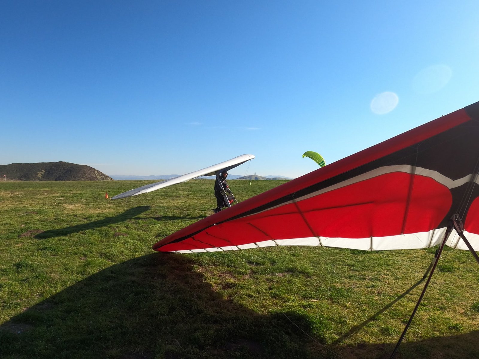 Good. Many circles at the opening below and in front of launch, half in, half out of a promising thermal that never got going. Lift over the LZ apron, paused in it then dove hard on downwind to a good landing into light SSE.