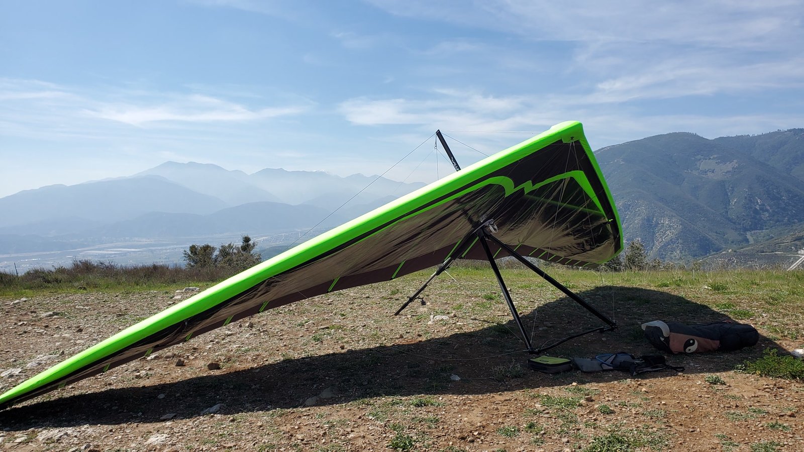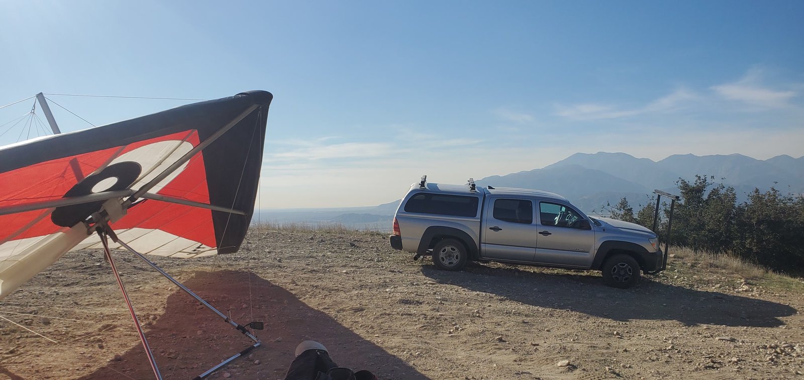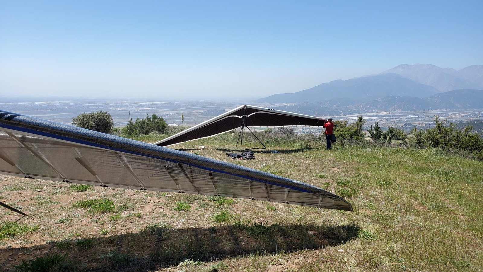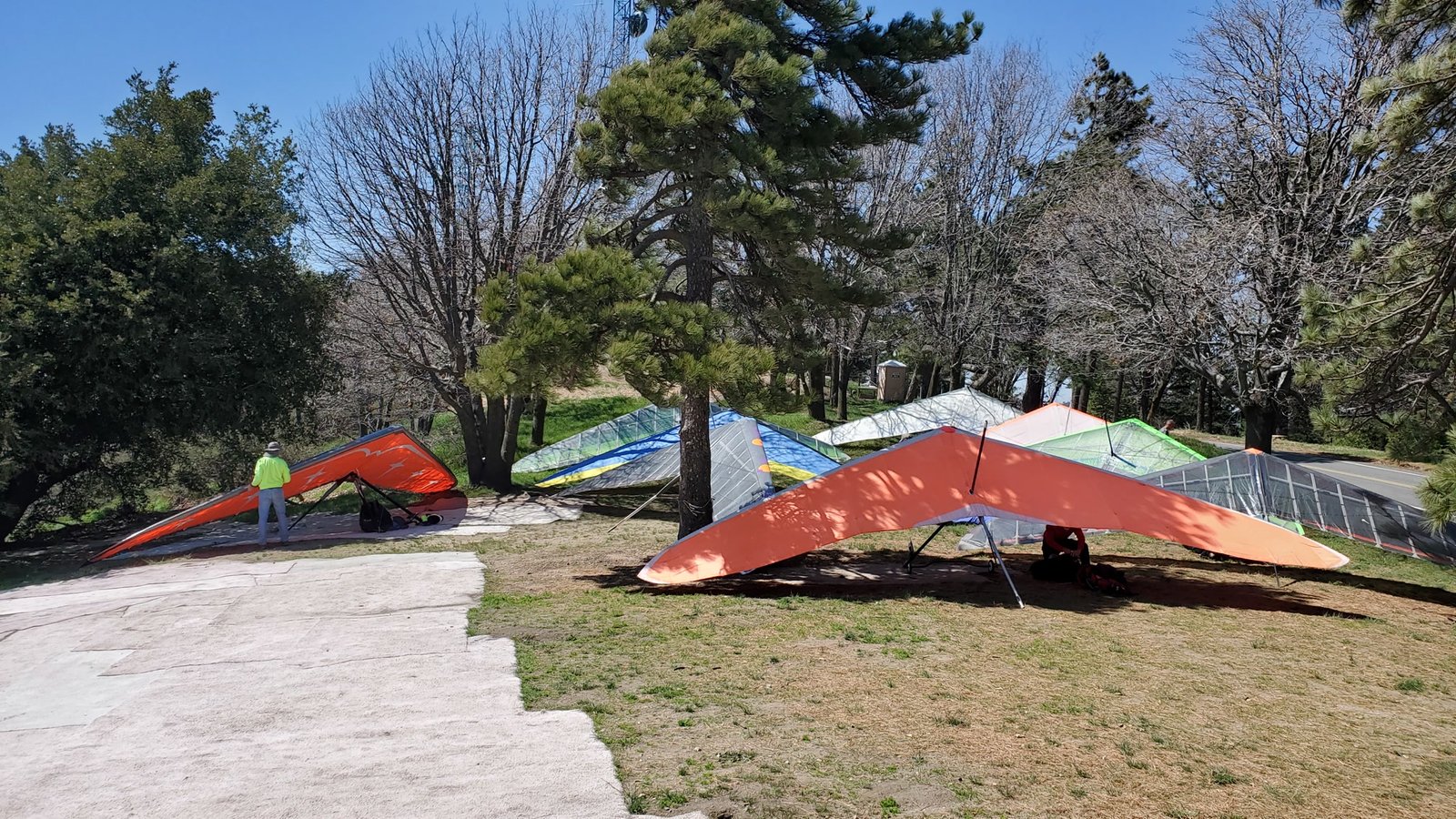 Only day of onshore in the middle of seven days of Santa Anas. Clearer and warmer than forecast. Gliders from the noon vans were soaring easily. There was a cycle as I walked to launch and I almost ran right off, but didn't. It lulled, then came in cross-right and then south. Ran off and floated to the west bowl-tops, found light lift. Back and forth a couple of times and I was high enough to circle and made a slow, steady climb to 4,300 msl north of Marshall Peak. Put the gloves on (tee shirt & shorts) and was comfortable. Saw a PG get pushed up and backwards north of Cloud Peak before getting kinda dumped and running away. I found the strong little core zooming north and fought to stay with it. Gained hundreds of feet before losing it. Went back to the spot and found it again. It was better and I rode it NE to 6,450 over the highway end of the road to Marshall. Around 5k, in a slow climb section, I had been debating whether 5.5k would be enough to go to Crestline :) Similar at Billboard back to 6,500 from 5,300 or so. Not as active at Pine but enough for an easy glide S and then E to Regionals. Flew around a little then headed down to land so I could pack-up and be back from hiking to get my truck in daylight. Nice hike from the pond. Many of the die hard pilots were out, so fun in the lz.