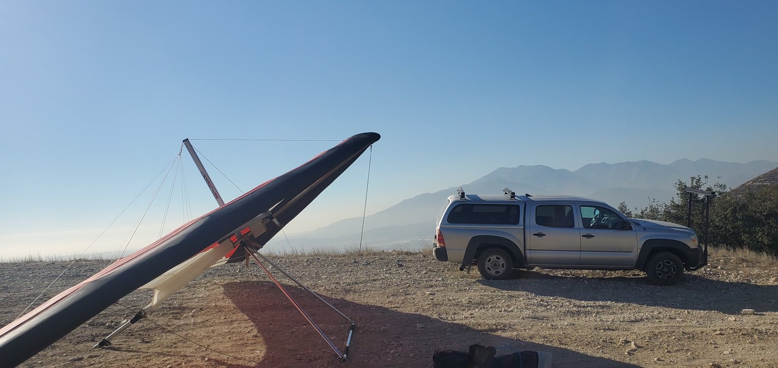 Launched Regionals and went Cloud Peak, N of Marshall, then Crestline in just over 20 minutes. Working the moderate lift very productively. 5,700 at Billboard then right to Pine and 6k N of the peak. NNW drift to the thermals, had one over the spine N of Pine that I couldn't turn into; had to go around the low wing. So m.j e wingovers and then back to the LZ for a nice kanding for 1:05 airtime. Nice to have an easy, fun flight. Ended up hiking all the way to Regionals to get my truck; took 1:05, coincidentally.