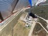 My first flight from the new high training hill, the Westfall launch, at AJX. Approximately 130' AGL. Did a big S turn, just reached the grass. Dan's training harness.