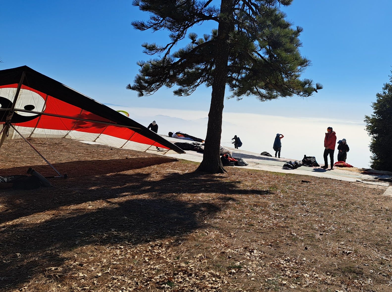 Single onshore day within a spate of N days. Crestline was zero wind and puffing down so eventually the Sandy Van took us to Marshall. Cycles started coming in there around 13:15. Good inflation and launch with a longish run. House thermal was going straight up, but not high. Flew over UM then Cloud Spine where I spent the rest of the flight. Tight boomers with hard to predict drift; I never got that far from the hill but had a great time working the tiny thermals. Good landing, went to one knee. |
