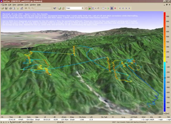 Ridge soared, ran from 500 FPM down. Missed it below Cloud Peak. Most soared > 1 Hr. Launch and airtime estimated - look up in GPS tracks, maybe. |