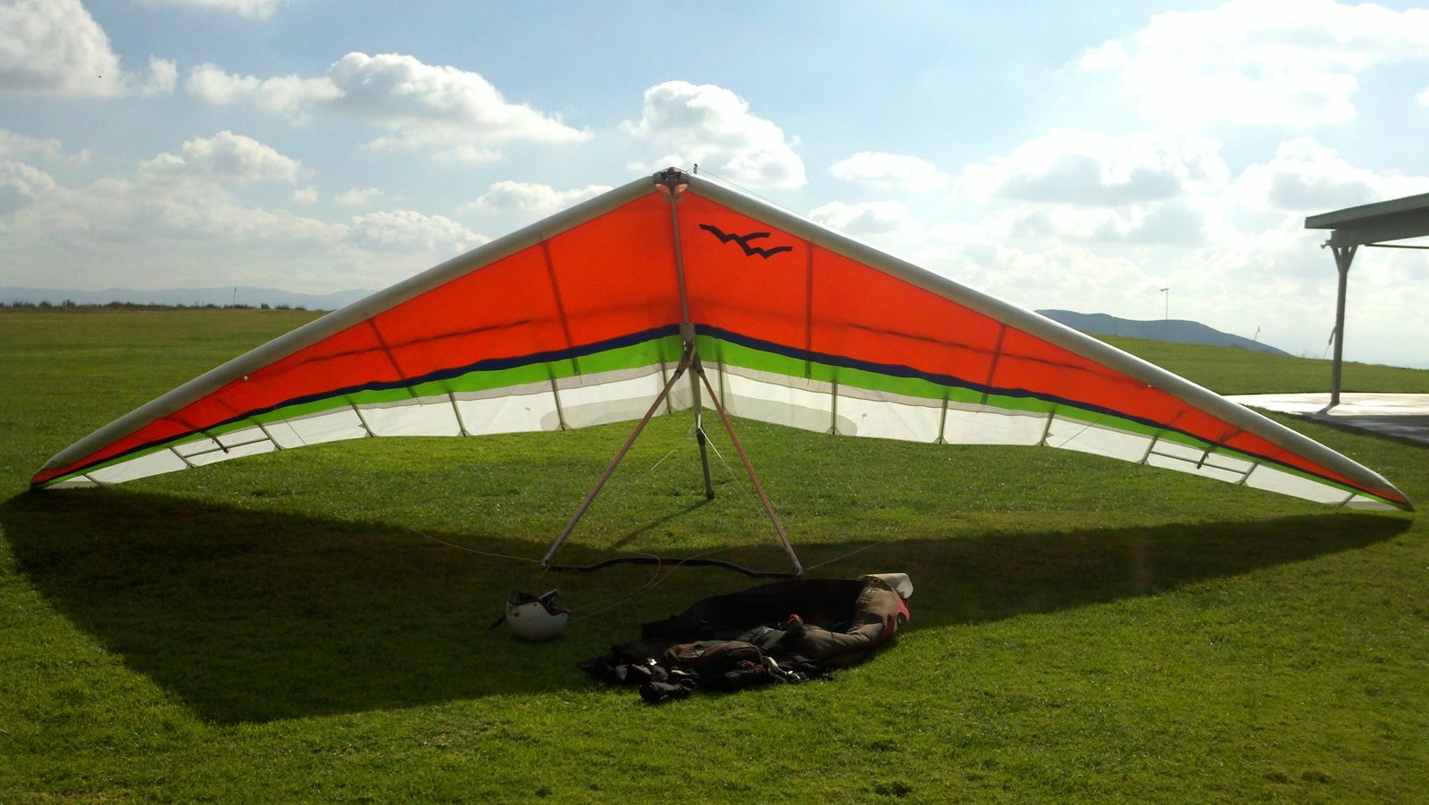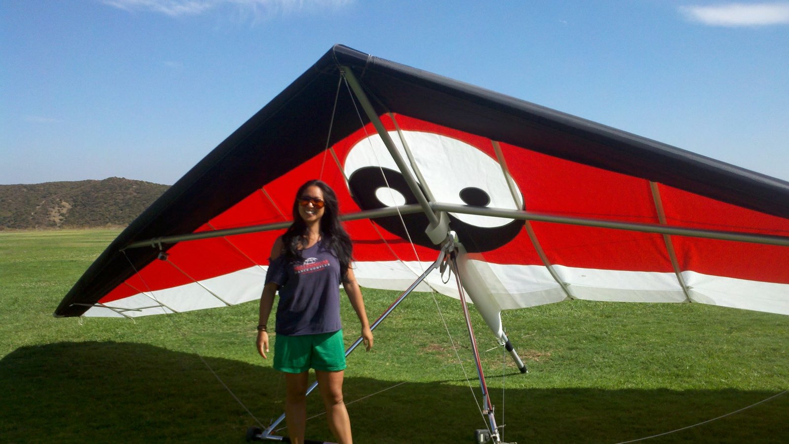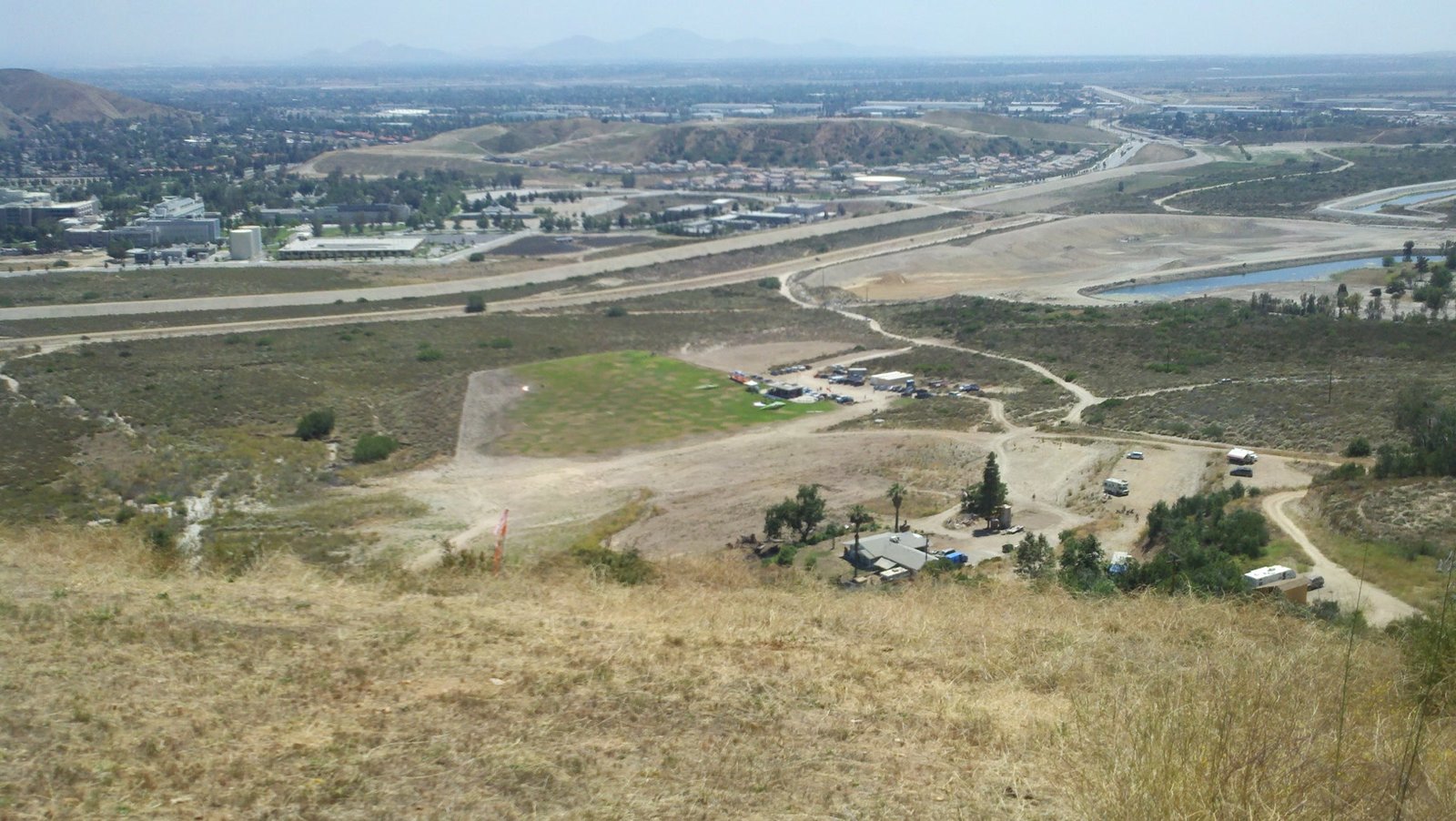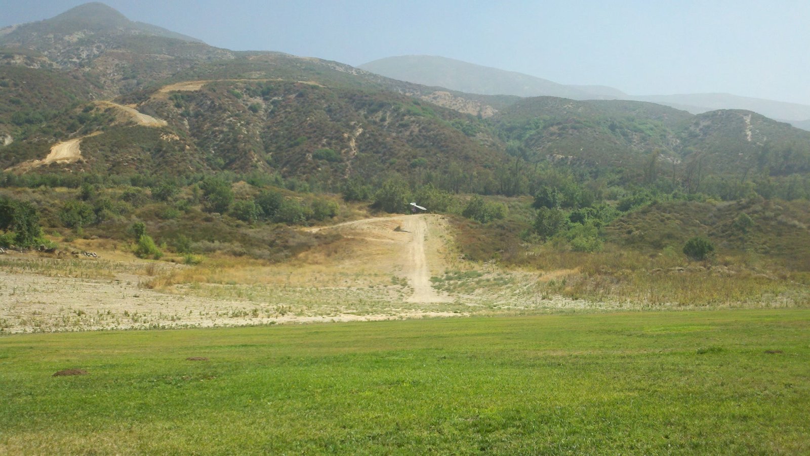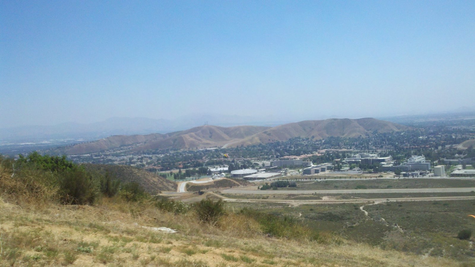 Clear and warm onshore day between Santa Ana episodes. Calm at the LZ and already a steady 5-10 SW at Regionals. Quite soarable. Nosecone wasn't attached so I flew straight to the LZ and landed. I had been ready to start my preflight and stopped to take a couple of pictures first, then re-started the preflight with the hang loop instead of at the nose area. Flew without attaching nosecone. |