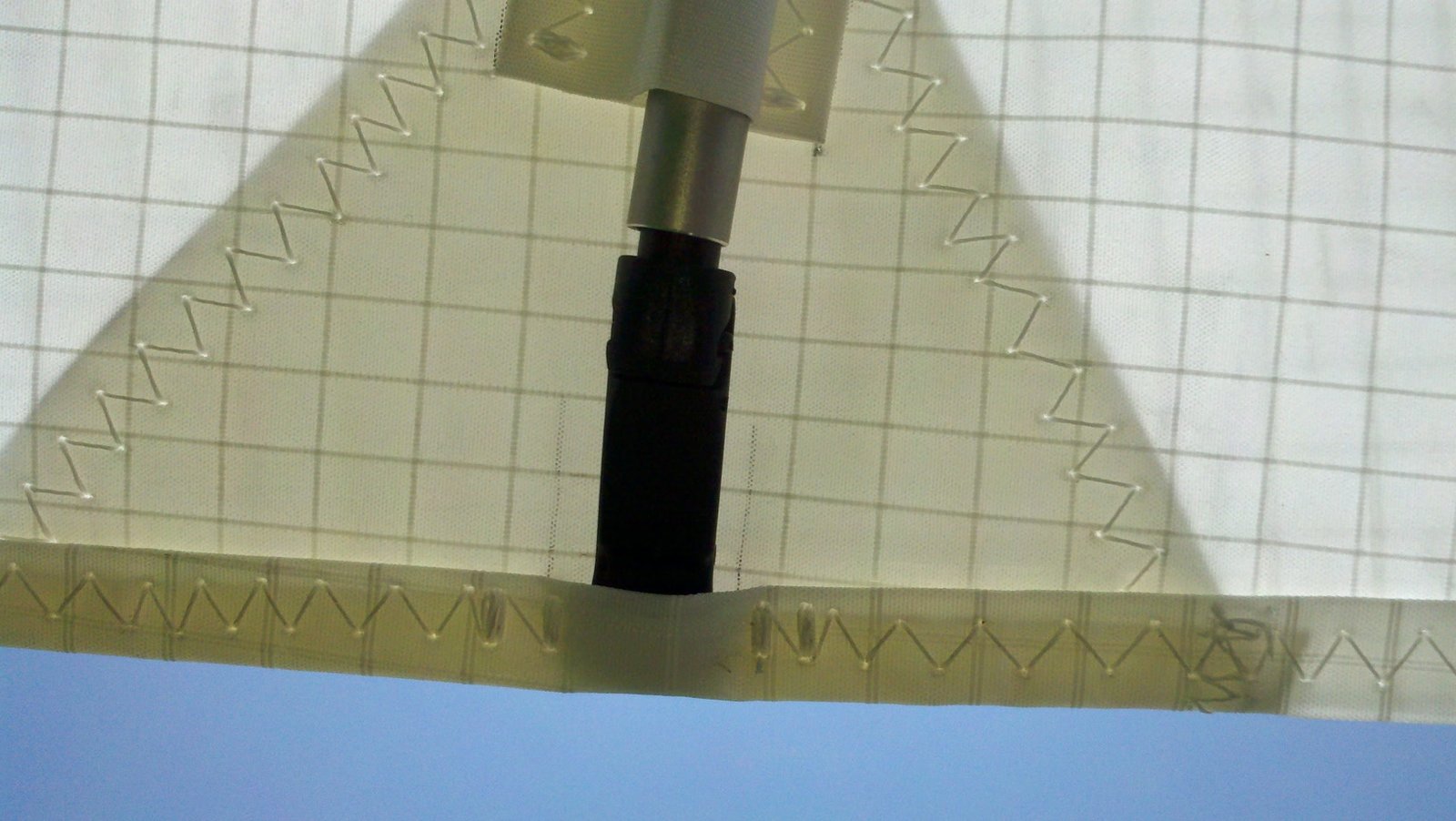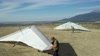 Cloud base had been a couple of hundred feet below Regionals when we left the LZ and was below the 750 by the time we got there. Launched into 1-3 MPH S and terrain-followed until getting below cloud base above the bluffs, maybe 200 feet below launch. one pass on the bluffs and a couple of S-turns and I was landing near the PG cone going south. A two-minute flight. Steve went back up and flew a Condor 225 real quick, so we got the four Condors for Japan flown and called it a day. Pitch pressure a little light. Moved hang strap back to against backup strap (how Peter usually builds them). Steve and Peter reported similar light pressures; I built all three gliders. Fill extra grommets at #6 battens? Wear hole, RT TS near side wire hole. Patch with sail repair tape. Wear is either feom the exposed rear end of the keel or the top side wire bolt. Peter's had black smudges in the same spot, Steve's had wear on the heat shrinv of the lower tang. All three gliders had been out to the LZ once before, and on and off the trailer several times. Need more padding? |