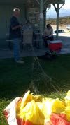 Saw the flags pointing at the parking lot, went west of the utility lines and found the offending thermal. I was following the sage dictum "When the ground is repelling you, don't land." The ground repelled me from ~700 AGL (2,400) all the way to 4k MSL :) Had a routine landing into SSW 0-1. Good. Trimmed a hair fast. Replace hang loop with 175. Loosen sprog nuts. Cut right zipper open more |