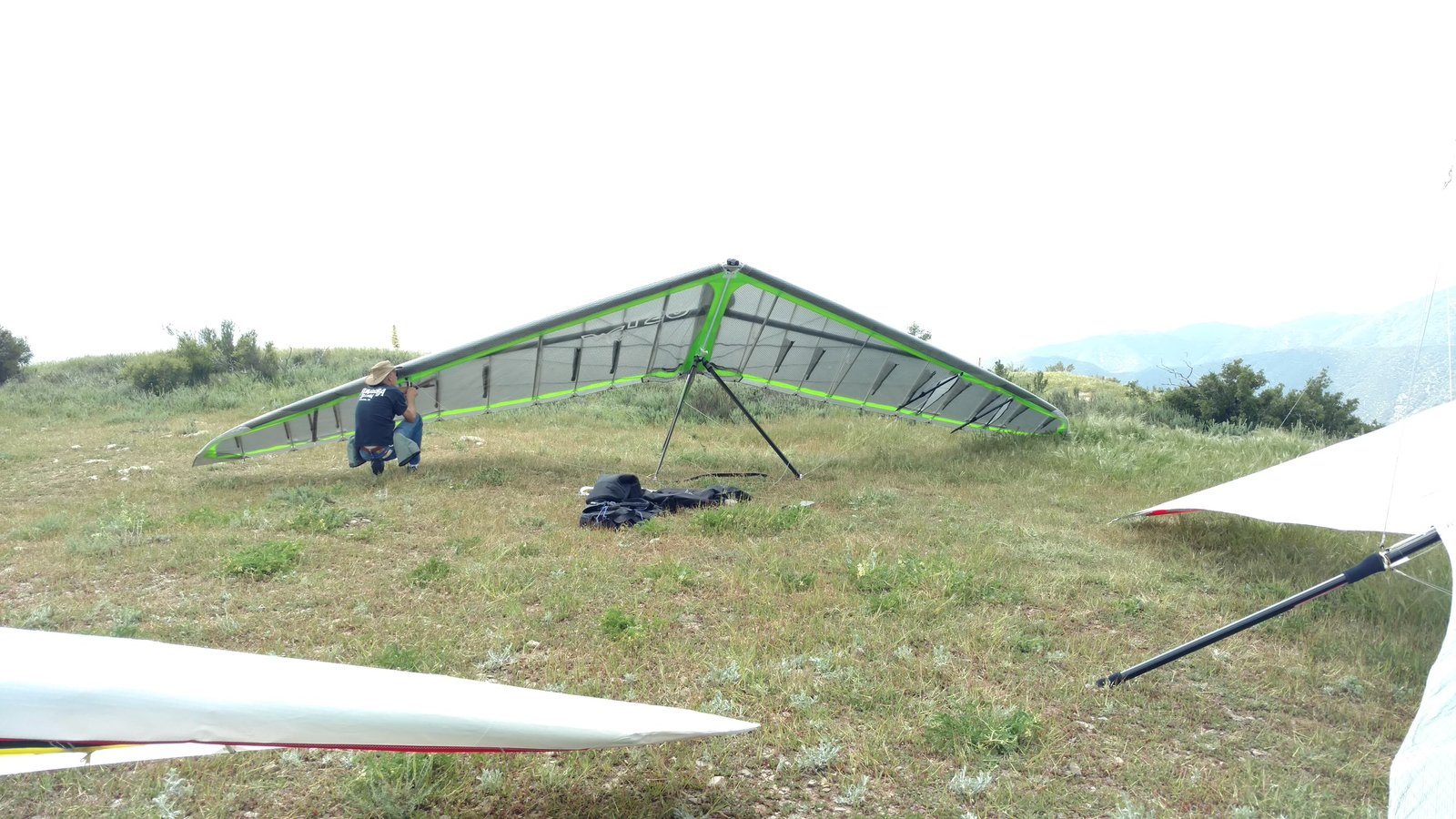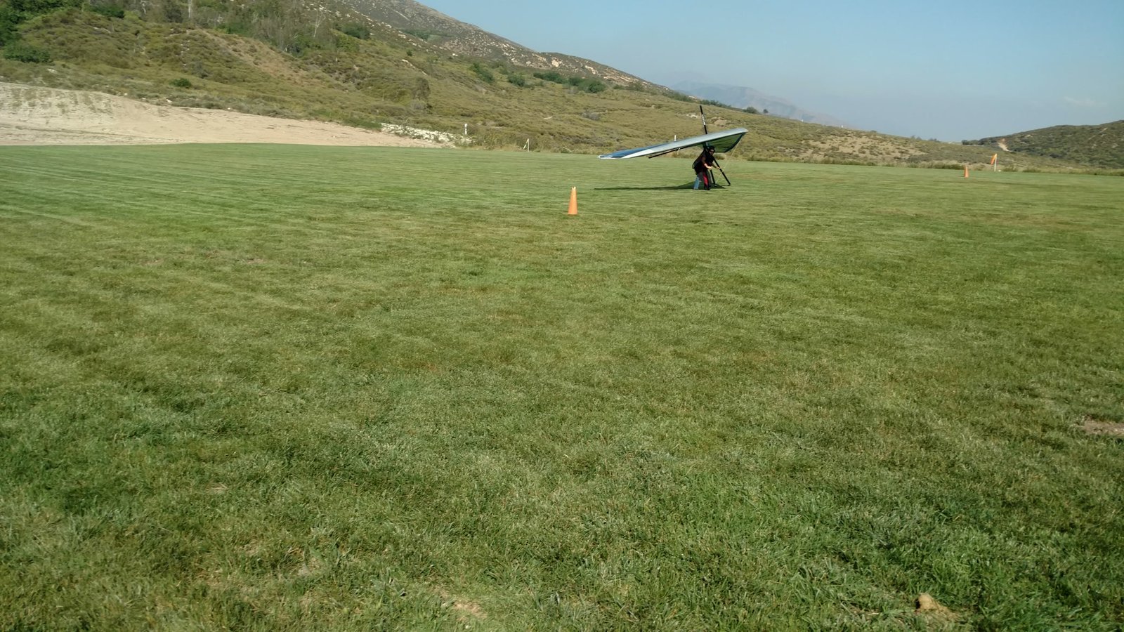 Good. Hot and clear. Good scratching off the 350. Ie passed and I went to the LZ to find zero wind and lift off the East side. Approach to the south still in zero, left wing dropped, then nose, before I really started to flare. Left LE aloud along the grass. No scuffs. Should have had more of an eye on the LZ to pick a landing cycle. |