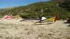 Good. Flight with regular battens. TT normal, to 33 and firm pressure. Refly with extra reflex 8-9-10; MM flew with them one similar U2 this round. All Mylar, window BS, spanwise rainbow TE frame. Struggled near the 750 for a long time. Got over the LZ with a good SW cycle but worked lift until the wind died. Flared hard and ran, plopped basetube hard. Hot knife haulback string. |