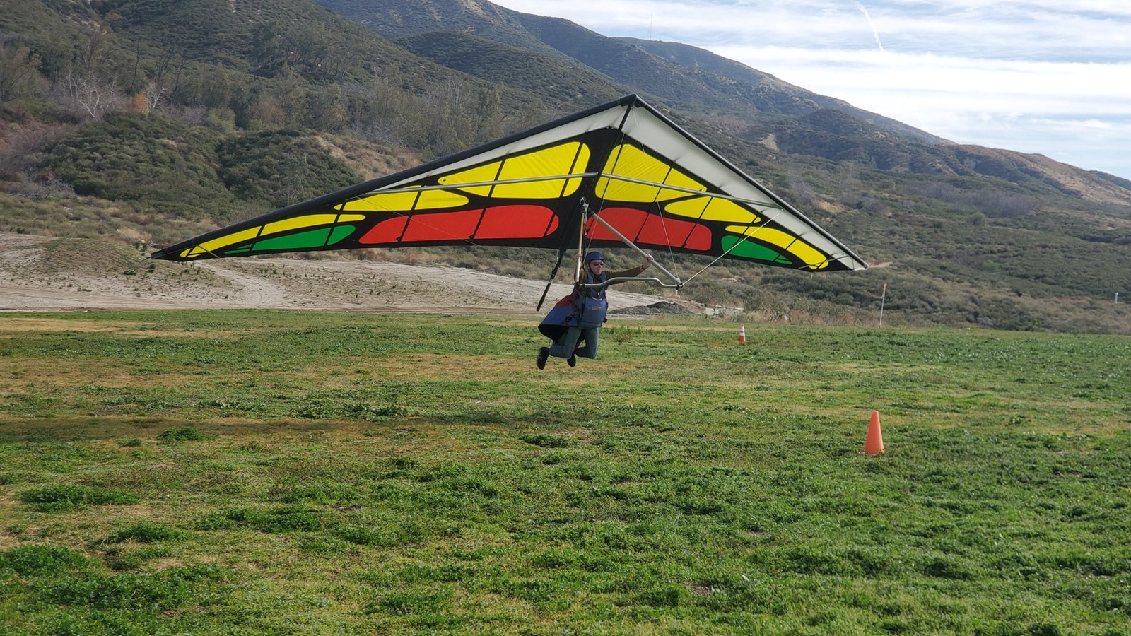 Great. Launched into lift from SE and circles right away. Got up but by bit, always turning. Wind from SW picking up, soared faces & thermals to top of Cloud Peak. Went to UM then dove for LZ. Switch, on & off wind there. Fast right-hand approach, got lifted a lot as I rounded-out. Trotting wing tip down right circle, holding the nose up..