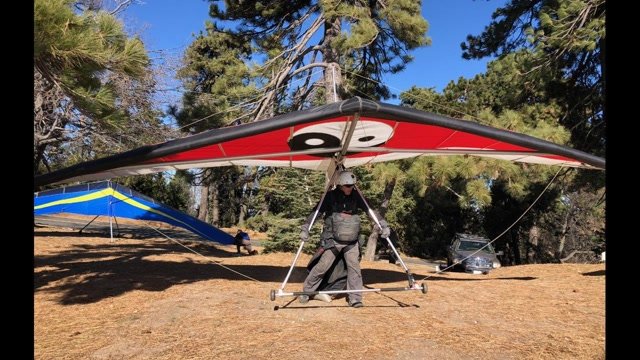 Unusually hot, 103 F, and pretty windy. One-step launch and floated up to 6k. Easy crossing to Pine, slow. Not great there. Long slow glide S to the Afterbay then surprisingly weak push to Last Chance. 7k off Cloud Peak so back to Crestline. Even slower going against the headwinds up higher; basically parked. Decided to round the radio towers. Along the way got 8k just flying straight and decided to round The Arrowhead instead. Got to 8.5k. Strawberry looked inviting but not in the F3T in that wind. Over Arrowhead Springs I saw an orange PG scratching way down there. Decided to try flying over my house (several miles SW) and it took about 15 minutes but I got there at 6k. Couldn't quite make out the lawn mowing pattern. Turned N for the LZ area, getting cautious now at 5k. Surprisingly slow getting to Badger Hill. Went to Regionals and saw Jordan launch tandem from way down the slope. Triceps getting tired from pulling in. Went over the LZ and ended up forcing the wing down by coring sink to approach height. Good hovering approach into WSW 15 with a plop onto my feet at the end, so I went to my knees. Still, felt great to fly the HG again (and do some wingovers) and even better to land upright. A PG went down between Regionals and Crestline, pilot OK. Most PGs were waiting until later to launch. Yesterday was epic, I heard. I was in T-shirt and gloves and very comfortable though 8.5k MSL was pretty cool. |